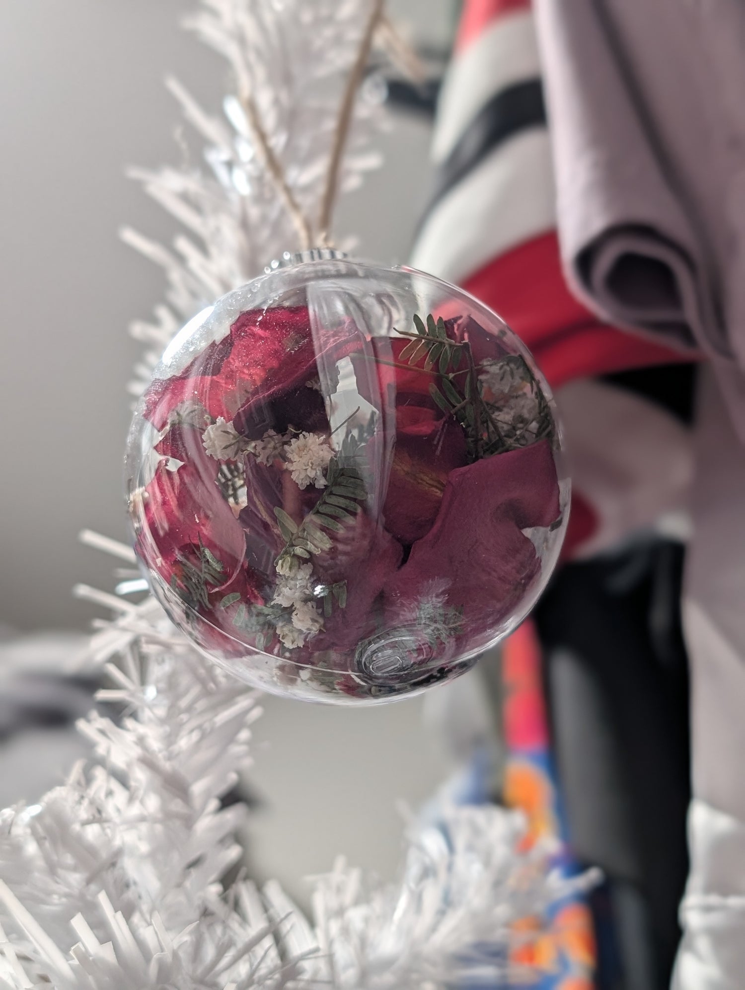 🎄 Take home three handmade floral ornaments ready to hang on your tree